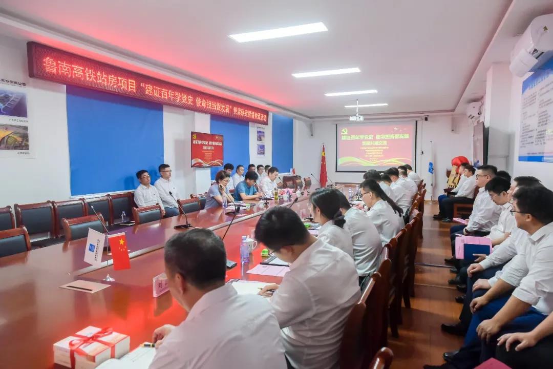 6月8日,魯南高鐵站房項目在項目指揮部開展“建證百年學黨史·使命擔當促發展”黨建聯建暨講黨課活動。中國鐵路濟南局魯南高鐵工程建設指揮部黨總支書記任志升,中國建設基礎設施有限公司紀委書記李春,中建山東投資有限公司總經理孫智、副總經理程金生,中建八局一公司副總經理王濤、紀委書記徐紅志等參加活動。