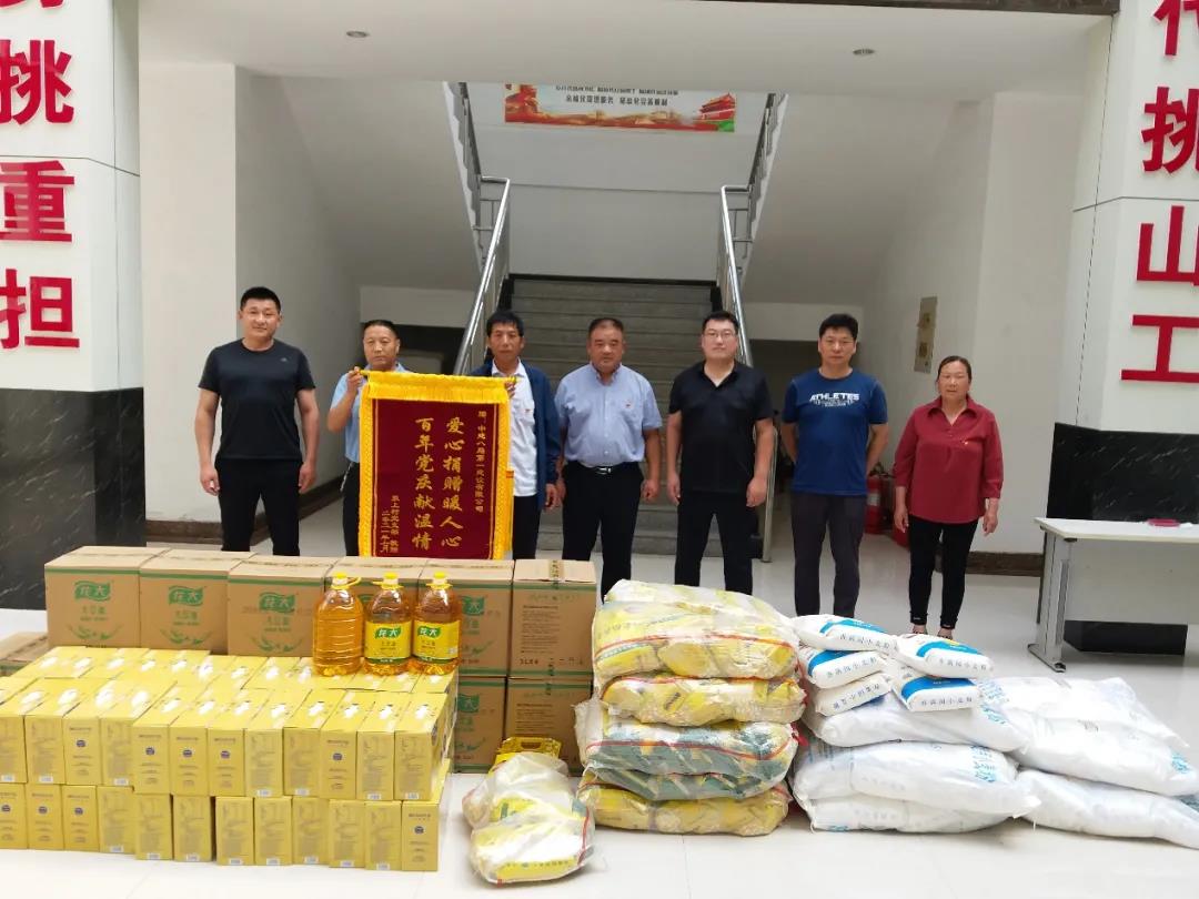 正威泰安金屬新材料項目人員為項目所在地岱岳區泉上村的老黨員們送去米面油、牛奶等慰問品,并應邀參加村委組織的慶祝建黨100周年茶話會。對項目部為村里提供大型機械、修筑排水溝等一年來的援助,村支書周長偉表示衷心感謝,并贈送了錦旗。